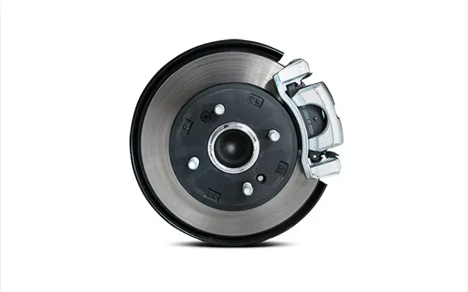 원반(디스크) 형태의 구조물이 바퀴와 같은 구조체에 연결되어 있는 방식으로 바퀴가 회전할 때 디스크도 함께 회전하다가 운전자가 브레이크 페달을 밟으면 유압이 전달되어 회전하는 디스크를 양쪽에서 디스크 패드라는 마찰재로 압박하여 디스크의 회전 속도를 떨어뜨려 멈추게 하는 방식입니다.