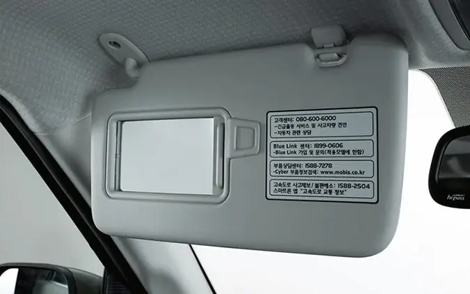 - 선바이저 거울 : 선바이저 안쪽의 커버를 밀면 거울이 있습니다.