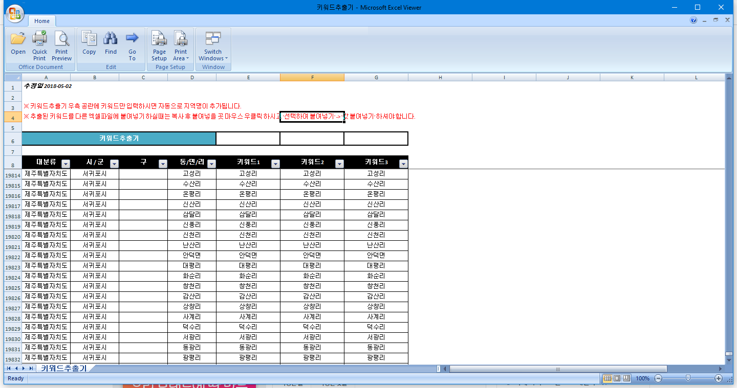 다운로드를 받고 설치를 하게 되면 엑셀파일을 불러와서 읽을 수 있습니다.