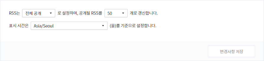 공개될 RSS는 50개로 갱신한다. 전체 공개로 설정하고 변경사항 저장을 누른다.