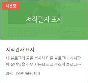 저작물 사용허가(CCL)의 경우에는 큰 의미는 없으나, 자신이 작성한 콘텐츠에 대해서 저작권을 안내하고 싶다면 저작권 사용허가(CCL)를 표시해준다. 완벽하게 보호받기를 원한다면 상업적 이용을 비허용을 해주고, 콘텐츠 변경 또한 비허용으로 변경해준다.