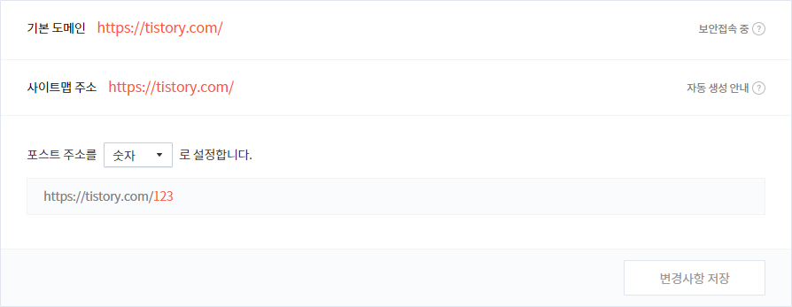 티스토리 블로그 주소 설정 중에서 문자와 숫자가 있다. 어떤 것이 좋다고 말하진 않겠다. 다만, 내 경우에는 종합적으로 판단했을 때, 결코 문자가 숫자보다 유리한 점이 많다고 생각하지 않는다. 나는 모든 블로그의 운영에서 오로지 숫자로만 만 대표 주소를 지정한다.