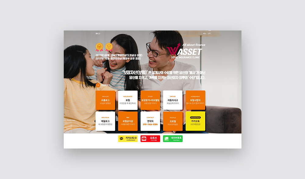 | 프로젝트 | 홈페이지형 블로그로 깔끔하게 제작된 보험 블로그 디자인입니다. 클라이언트 분께서 보여주신 샘플(레퍼런스)들을 기준으로 하여 맞춤식으로 제작된 홈페이지형 블로그 디자인입니다. 이번 작업은 조금 섬세하게 작업이 진행되었는데요. 전체적으로 오렌지 컬러의 깔끔한 느낌으로 제작하였습니다. 메인 메뉴는 총 10개로 구성되었고 추가로 3개의 유튜브 네이버톡톡 카카오톡 아이콘이 추가되었습니다. 로고는 우측 상단에 플랫하게 적용되었고, 슬로건은 메인 중앙에 정렬되었습니다. 클라이언트 분께서 추가하시고 싶은 내용이 있어 왼쪽 상단 및 별도로 구성하였고 메뉴마다 전체적인 컬러감이 통일되도록 구성하였으며, 심심하지 않도록 요소별로 포인트를 강조하였습니다. 또한 배경은 보험의 이미지를 따뜻하게 느낄 수 있는 사진으로 선정하여 적용하였습니다. 메인 메뉴 섹션이 선명하고 강조되는 부분이 있기 때문에 배경적인 요소는 전체적으로 여백을 느낄 수 있는 무채색톤으로 컬러의 밸런스를 맞춘 홈페이지형 블로그 디자인이라고 할 수 있습니다. |