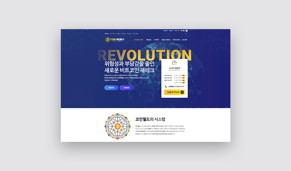 | 프로젝트 | 이번에는 비트코인 관련 홈페이지형 블로그 디자인입니다. 코인월드 지점블로그 디자인이며, 이전과 같이 3단 레이아웃으로 디자인된 홈페이지형 블로그 디자인으로 제작되었습니다. 바로 이전에 업로드한 블로그 디자인과 같은 레이아웃으로 제작되었지만, 전혀 다른 느낌으로 제작된 것을 확인할 수 있습니다. 하지만 각 섹션에 필요한 요소들은 거의 동일하게 적용되었습니다. 텍스트와 컬러톤, 아이콘 등이 다르게 사용이 되었습니다. 일러스트나 깔끔한 디자인이 적용되었기 때문에 블로그디자인이지만 공식홈페이지와 비슷한 느낌으로 제작이 된 홈페이지형블로그 디자인입니다. 위와 같이 실제로 적용된 홈페이지형 블로그 디자인에 많은 컨텐츠가 업로드 되어 있으면 굉장히 블로그의 완성도가 높아지며, 보는 사람들에 하여금 블로그가 제대로 운영되고 있다는 느낌을 받을 수 있습니다. 많은 블로그 작업을 하다보면 기존에 컨텐츠가 작성되어 있는 블로그가 있기도 하고, 아예 처음 제작하는 블로그가 있기도 합니다. 확실한 것은 블로그 디자인을 해서 블로그를 예쁘게 꾸미더라도 컨텐츠가 함께 작성되어 있으면 더욱 완성도 높은 블로그가 탄생합니다. 홈페이지형블로그 디자인은 일반적인 블로그보다 훨씬 세련되면서도 메뉴가 직관적으로 보여지기 때문에 방문자가 쉽게 메뉴나 컨텐츠를 접근할 수 있다는 장점이 있습니다. |