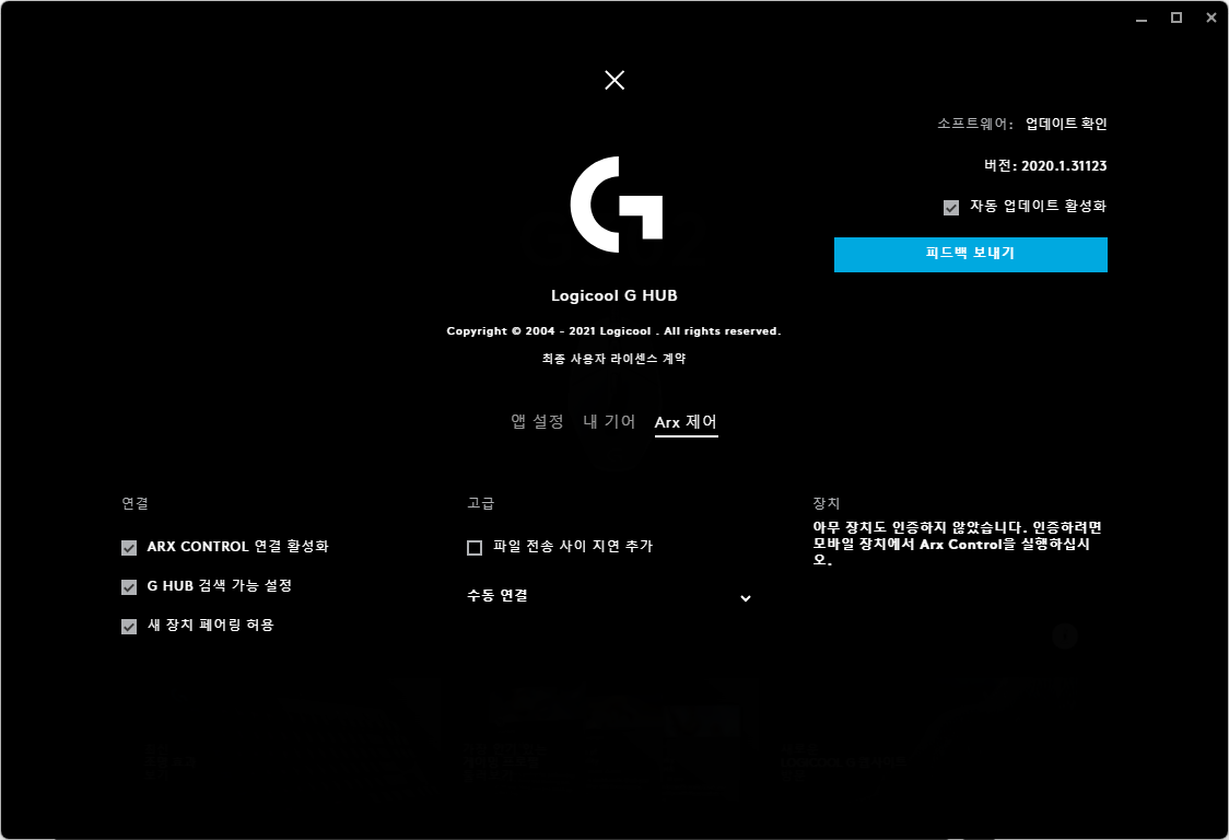 위와 같이 로지텍 지허브 버전은 2020년도 1월 버전입니다. 로지쿨 지허브 우회설치를 통해서 무한로딩 문제를 쉽게 해결할 수 있습니다. 프로필 등을 등록하시면 다른 디바이스 환경에서도 프로필이 공유됩니다.