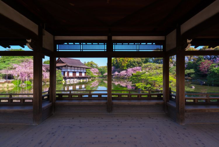 교토의 수도가 된 지 1100주년을 기념하기 위해 지어진 헤이안진구 신사의 가장 눈에 띄는 특징은 우뚝 솟은 붉은 도리이 문이다. 강렬한 색상과 깨끗한 땅으로 교토의 상징이자 주요 관광 명소이다.