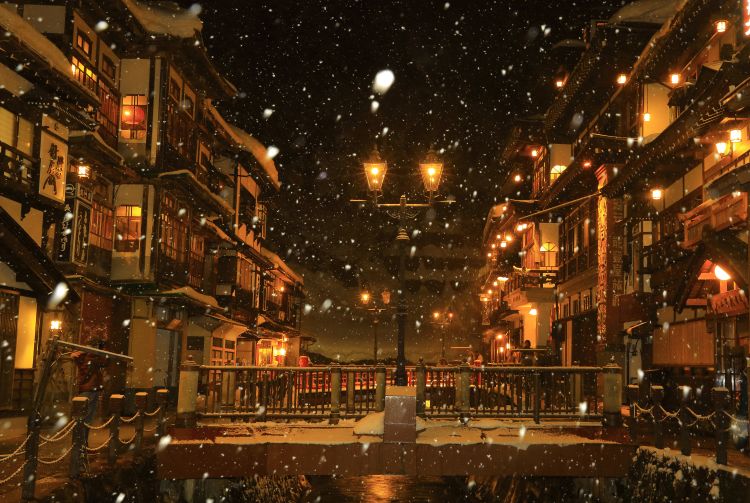 긴잔온천은 야마가타 시골의 옛 은광산 부지에 세워져 옛 분위기에 대한 취향을 가진 손님들을 찾아다닌다. 현대의 휴양지보다는 타이쇼 시대(1912~26년)의 소설을 연상시키는 그림 같은 풍경을 연출하기 위해 전통 여관이 강을 따라 늘어서 있다. 대도시 생활과는 거리가 멀고 여행 가치가 충분히 있다.
