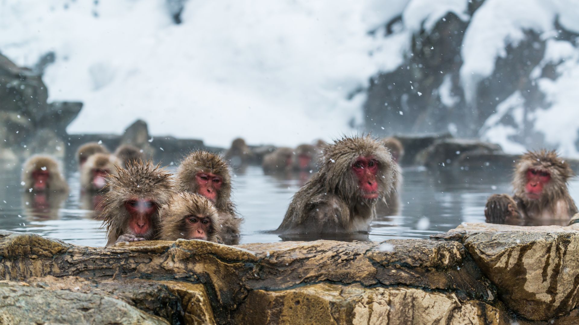 - 유다나카 온천 근처의 온천을 좋아하는 눈 원숭이들