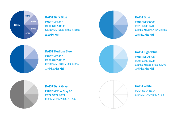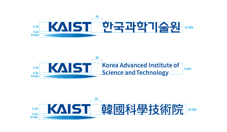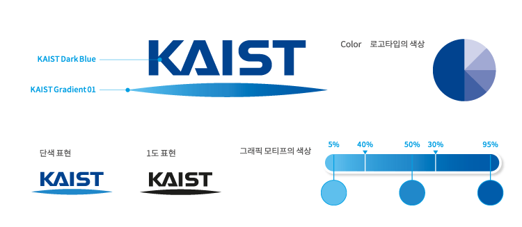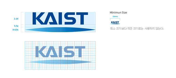 KAIST의 로고는 정식명칭을 그래픽화한 로고타입과 하단의 그래픽 모티프로 구성되어 있다. 특별한 경우가 아니라면 로고타입과 그래픽 모티프는 독립하여 사용하지 않는 것을 원칙으로 한다.