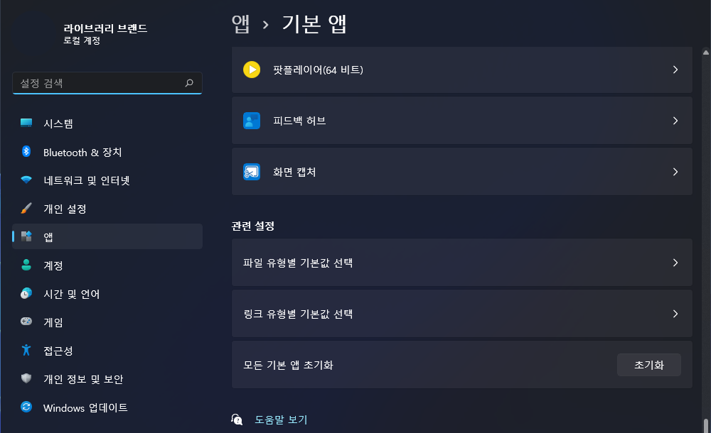 제일 쉬운 방법은 윈도우 키를 누르거나 검색 아이콘을 클릭해서 기본 앱으로 검색하면 위와 같이 기본 앱 설정으로 쉽게 이동할 수 있다.