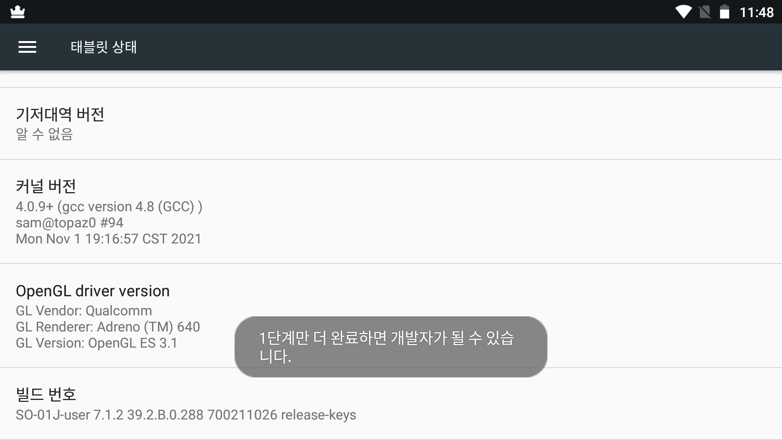 설정에서 개발자 옵션에 들어가려면 숨겨진 기능을 활성화해야 한다. 먼저, 빌드 번호를 연속으로 클릭하게 되면 개발자 옵션이 표시된다.