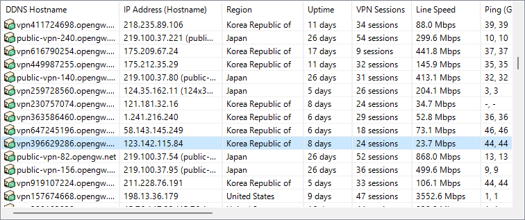 모든 설치과정이 완료되었다면 클라이언트를 실행한 다음 VPN Gate Public VPN Relay Servers를 클릭합니다. 그다음부터는 원하는 서버를 선택(예를 들면: 한국 서버)을 선택하고 Connect to the VPN Server를 클릭하면 서버 접속이 진행됩니다.