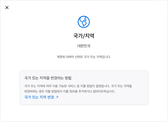 국가/지역 변경