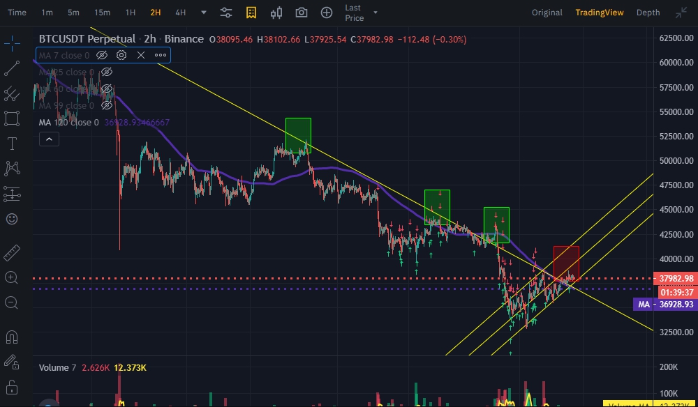 물론, 추세가 이어지지 못하고 다시 가격이 하락할 수도 있습니다만, 거래량 등의 보조지표를 활용한다면 높은 확률로 이익을 발생시킬 수 있을 것입니다. 반대로, 선물거래소(바이낸스·바이비트·비트맥스 등)를 이용한다면 공매도(숏 포지션)을 통해 가격이 하락할 지점에서 시장에 진입해 이익을 내는 방법이 있습니다.