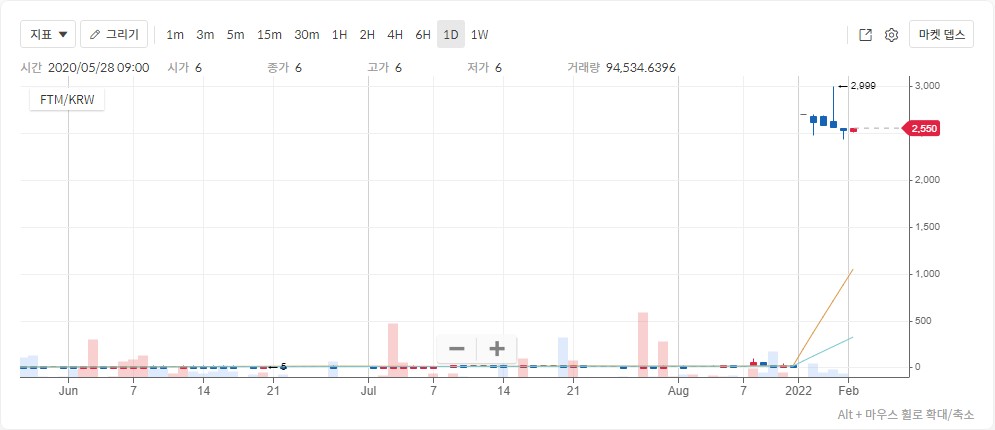 위의 내용에서 대략적으로 팬텀 코인에 대한 성질과 간략한 소개, 작동 원리, 미래 가치에 대해서 이야기를 해보았다. 처음 팬텀 코인이 상장했을 때는 그야말로 '상장 빔'으로 가격이 폭등했고 긴 시간 동안 하락장이 지속되었다가 다시 가격이 폭등했다.