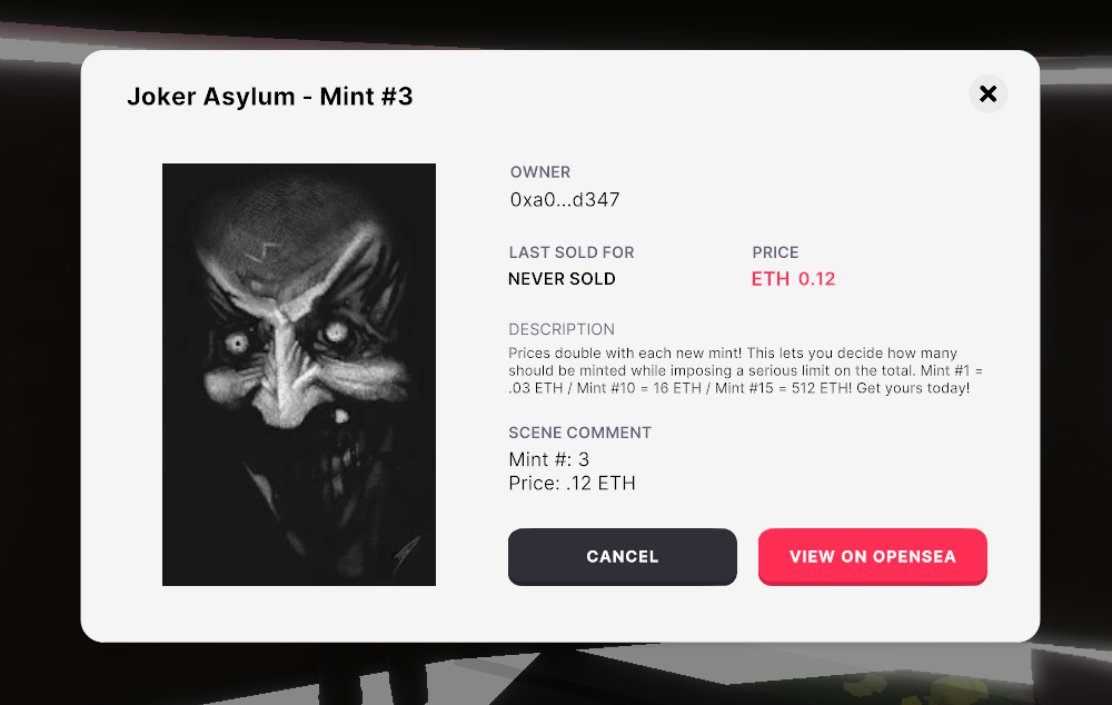카드를 클릭하면 각 그림들을 구매할 수 있는 NFT 사이트로 이동됩니다. 이런 걸 보면, 약간 딥웹 같은 느낌마저 듭니다.