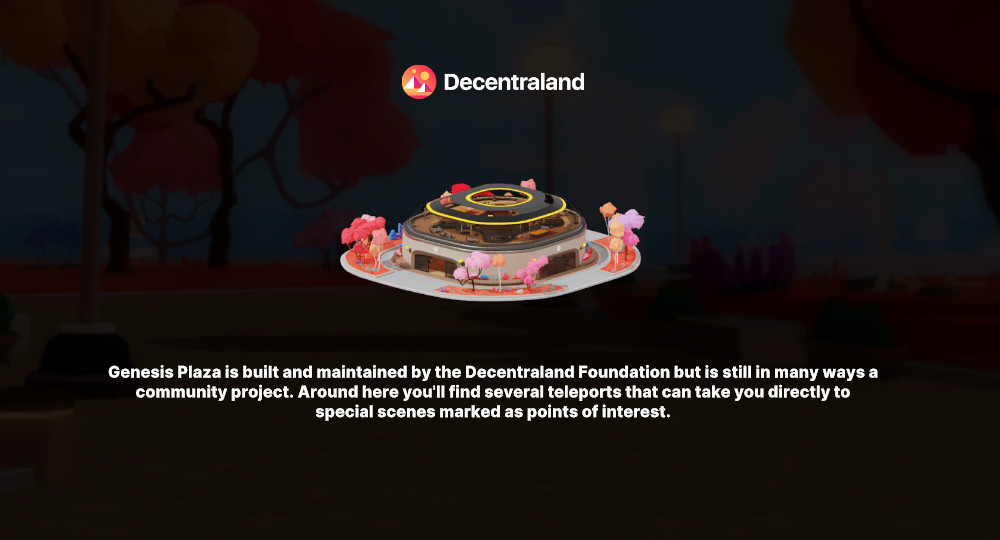 게임 내에 접속하면 다른 곳으로 바로 이동할 수 있는 옵션과 디센트럴랜드 제네시스 플라자로 이동하는 곳이 있습니다. 일종의 광장인 셈이죠. 게임에 접속하면 전 세계에서 접속한 여러 사람들을 만날 수 있습니다. 그리고 디센트럴랜드는 이런 월드에서 토지를 소유하는 개념이겠죠.