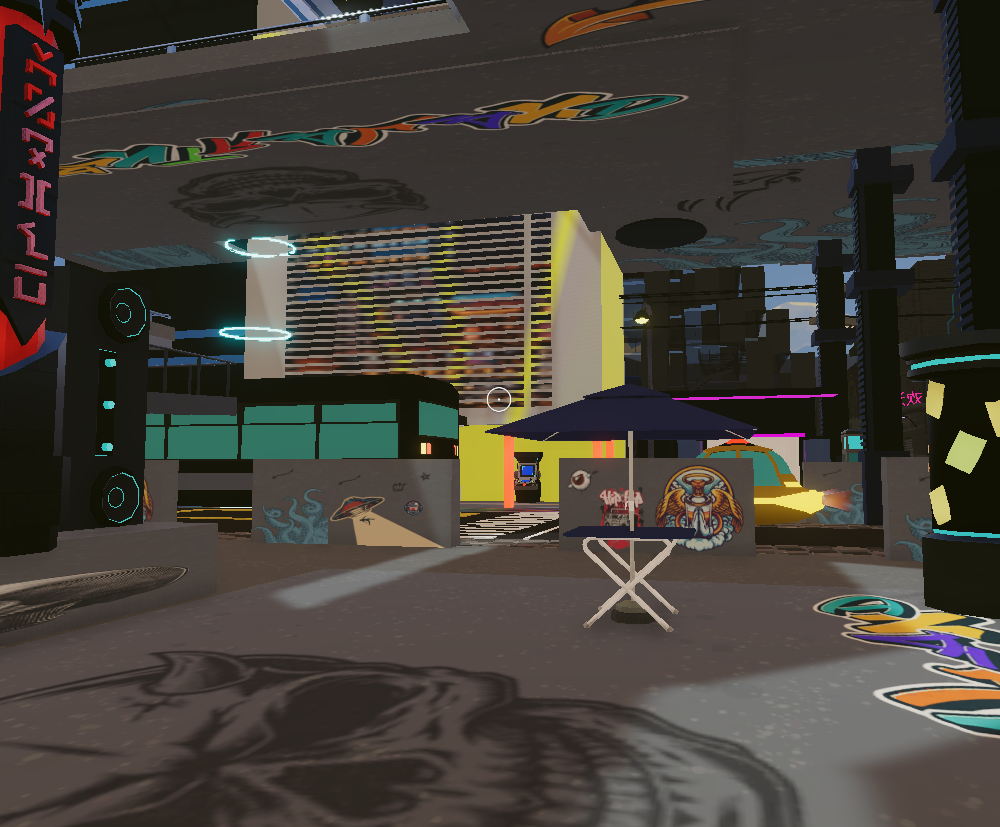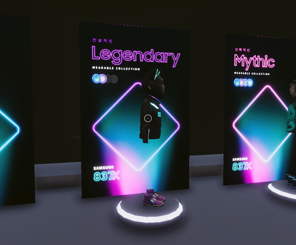 삼성 매장으로 가던 중에 사이버펑크 매장을 만났습니다. 만났다는 표현이 맞는 것이, 날아다니는 운송수단이 많이 보였습니다. 자동차 같은 것들도 많이 있었고요. 이것이 어떻게 유저들과 상호작용을 하게 될지는 잘 모르겠으나, 정말 신기한 것들이 많아서 솔직히 조금 놀랐습니다.