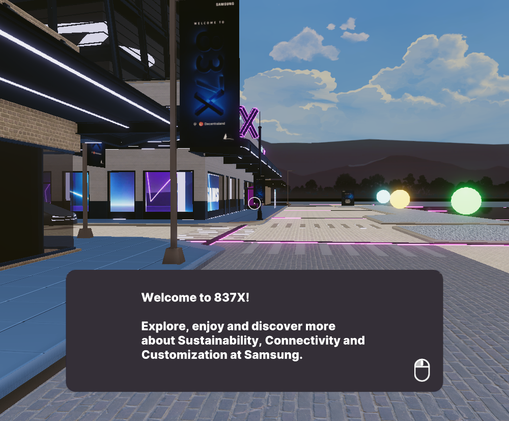 그래도 제 목적인 삼성 매장에 도착해서 한글을 보니까 감개무량합니다. 디센트럴랜드의 메타버스 세계 속에서는 삼성 매장뿐 아니라 정말 신기한 건물들이 가득했습니다. 이를 어떻게 구현했을지 신기하기만 합니다. 다만, 아쉬운 것은 사람들이 그렇게 많은 것 같지 않다는 점과 이 게임에서 단순히 '보는 것'에만 만족해야 하는지는 잘 모르겠습니다.