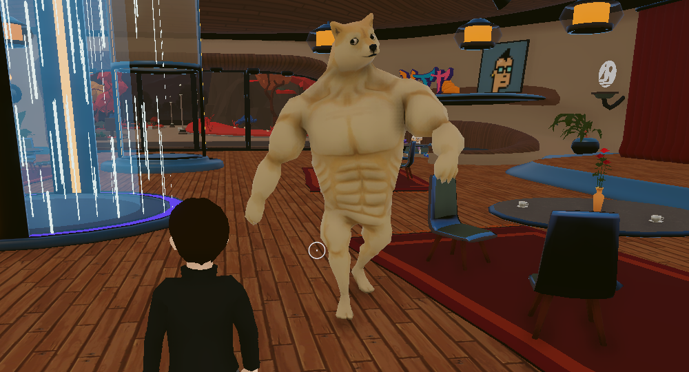 처음에 접속하면 방문하는 곳 중 하나인 제네시스 플라자에서는 NPC 캐릭터인 근육 도지가 돌아다니고 있었습니다. 저를 계속해서 쳐다보고 있으니 새삼 놀라웠습니다.