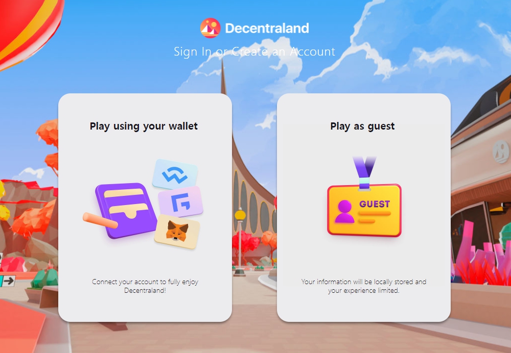 새롭게 방문한다면 당연히 게스트로 진행해보는 것을 권장합니다. 그렇게 어렵지 않을 것입니다. 만약, 디센트럴랜드 코인을 매수하기로 마음먹었다면 해당 코인에 대해 조금이라도 더 많은 정보를 가지고 있는 것이 좋겠죠. 별도의 설치 과정 없이도 바로 접속할 수 있었습니다.