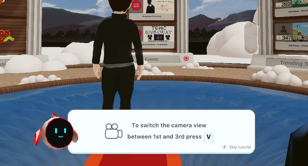 이렇게 게임을 하다가 튕기면(게스트 상태) 다시 접속하면 이어서 게임을 플레이할 수 있습니다. 게스트 계정이라고 할지라도 튕기면 다시 새롭게 해야 할 줄 알았는데, 그건 아니라서 다행입니다. 지금은 디센트럴랜드 매장 내의 삼성 매장을 찾아가 보고 있습니다.