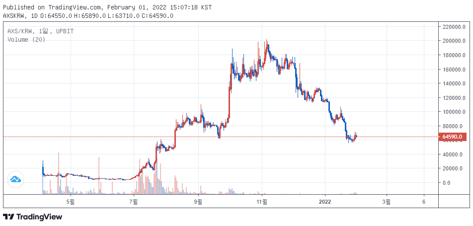 당장 매수에 참여하기에는 위험성이 크지만, 횡보 구간을 거치거나 반등을 하게 되면 적극적으로 매수해도 좋을법한 코인이 아닐까 생각이 됩니다. 해외에서 엄청난 인기를 끌고 있는 P2E 게임이자 이더리움 게임, 그리고 NFT 게임의 대장격인 엑시인피니티의 미래가 앞으로도 기대됩니다.