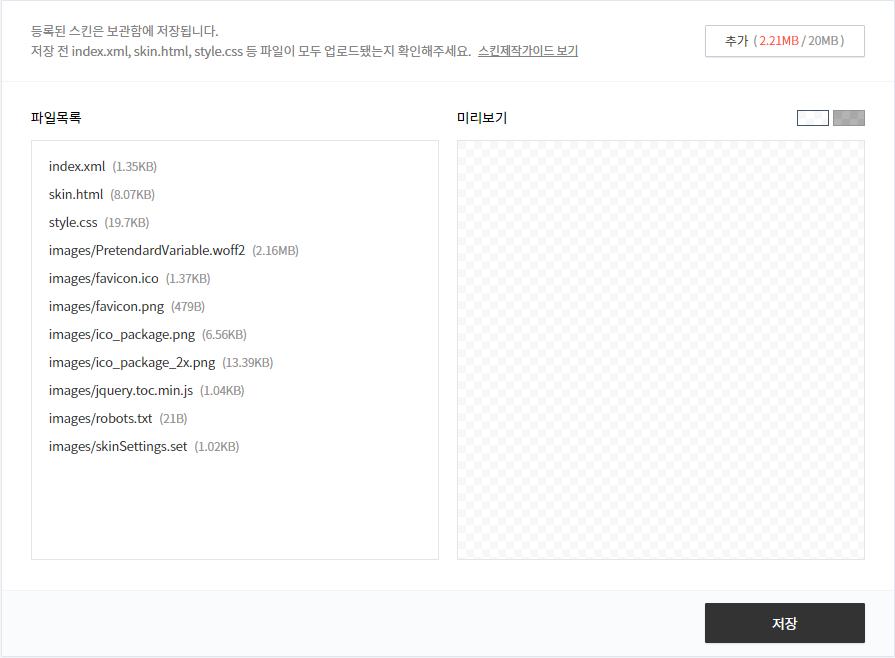 아래의 압축파일을 다운로드하여 주시고 위의 스킨 편집에서 압축 파일을 모두 추가해주세요.
