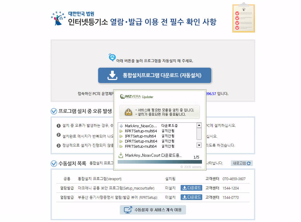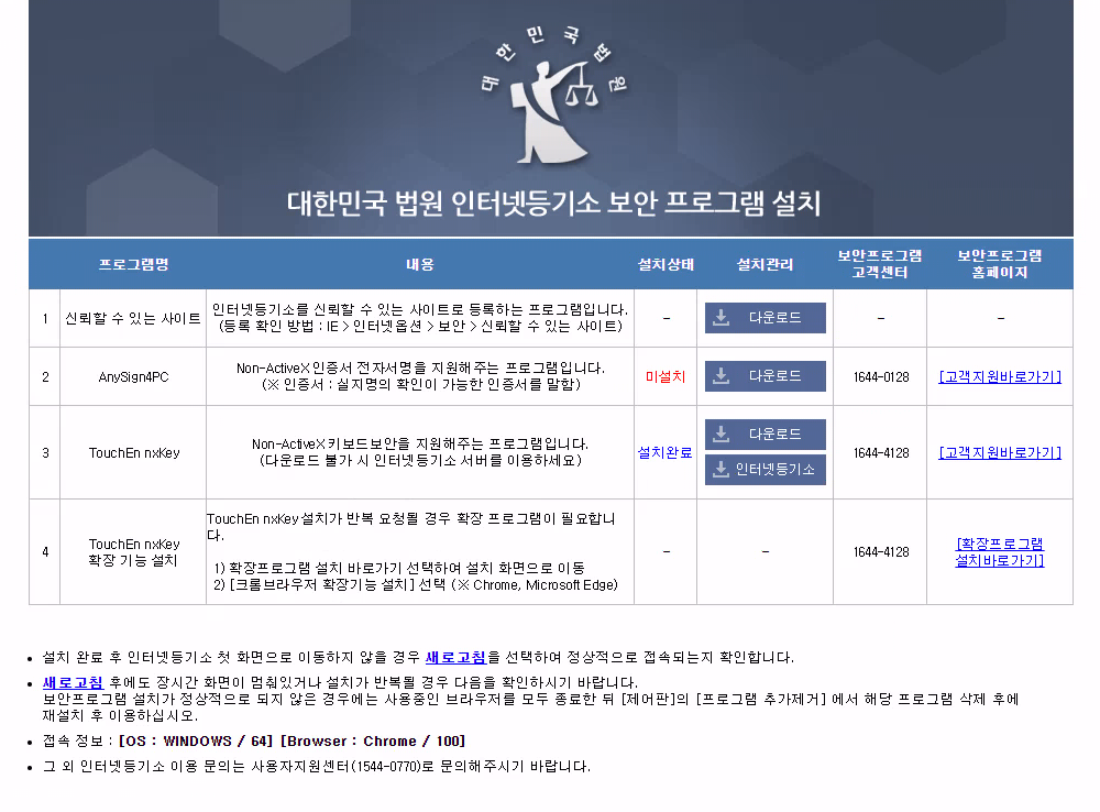 등기부등본을 발급하기 전에 반드시 해야 하는 것이 있습니다. 바로 대한민국 공공기관을 이용한다면 꼭 설치해야 할 보안 프로그램이죠. 보안 프로그램은 컴퓨터를 많이 느리게 만듭니다. 그래서 별도로 사무용·공공기관 사이트 접속용 컴퓨터가 있으면 더욱 좋습니다.