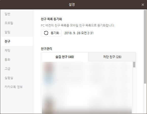 카카오톡 차단 숨김친구 설정 방법