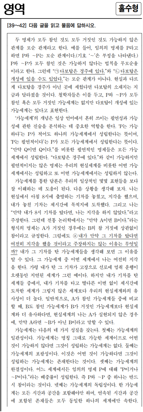 2019년 수능 국어 (39번 - 42번) 문제 지문 전문