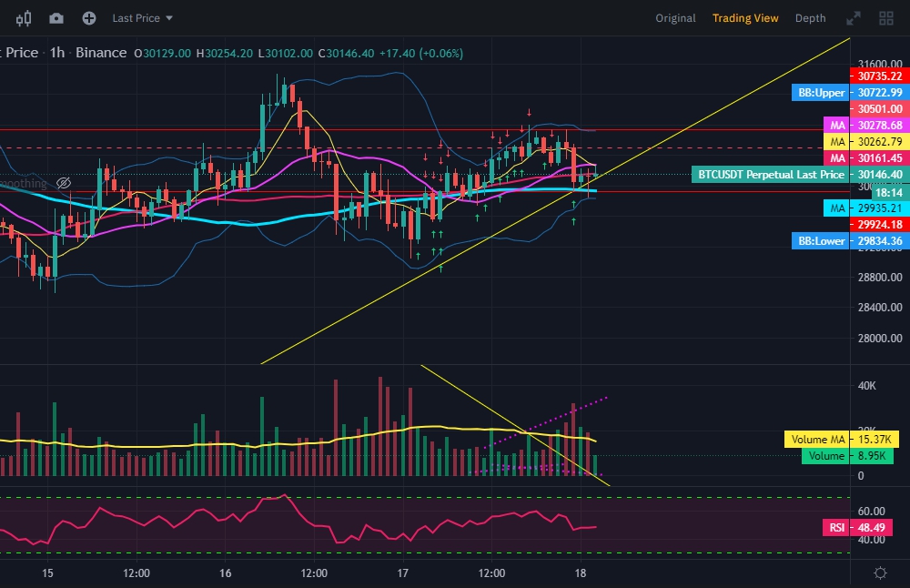 가령, 위와 같은 차트에서 보면 추세가 하방을 향하다가 1시간 봉에서 장기 이동평균선(99)을 뚫고 올라가는 지점을 확인할 수 있다.