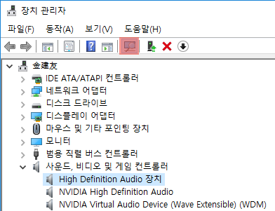 이곳에서 사운드 드라이버를 제거해주고 다시 설치해줄 수 있습니다.