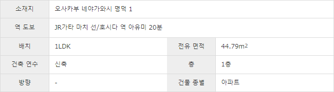 일본에서 아파트란 우리나라에서 말하는 아파트와는 다소 조금 차이가 있다. 오히려, 오피스텔과 가까운 느낌이 든다. 한국의 아파트 느낌이라면 일본에서는 맨션으로 찾아보면 되는데, 몇 번 방을 둘러보다보면 감이 올 것이다.