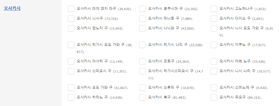 도쿄 근처에서 방을 구하고 싶다면 위의 동경 메뉴를 클릭해서 찾을 수 있다. 도쿄, 카나가와, 치바, 사이타마, 이바라키, 토치기, 군마 등이 해당된다. 오사카에서 방을 구하고 싶다면 간사이 지방에서 찾아보면 되는데, 효고, 교토, 시가, 나라, 와카야마 등이 해당된다.