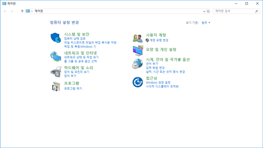 제어판 가시는 방법은 아시겠죠? 실행창에서 [제어판]을 치시면 쉽게 이동이 가능합니다. 제어판으로 이동했다면 접근성을 클릭해줍니다. 어렵지 않습니다. 천천히 따라해보세요.