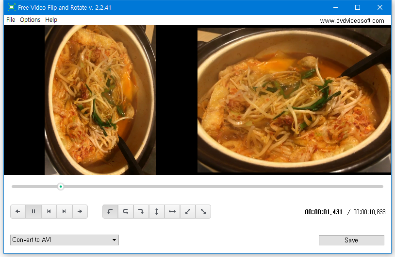 이런 식으로 회전이 가능합니다. 너무 간단해서 굳이 설명을 길게 할 필요가 있을까 싶네요. 설치용량도 그렇게 많은 편도 아니고 사용방법도 매우 직관적이고 간단하여 블로그나 영상파일을 많이 사용하시는 분들이라면 꼭 필수 프로그램이 아닐까 싶습니다.
