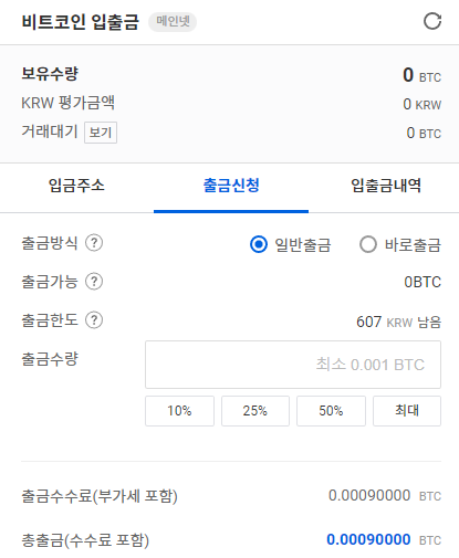 출금 주소 선택