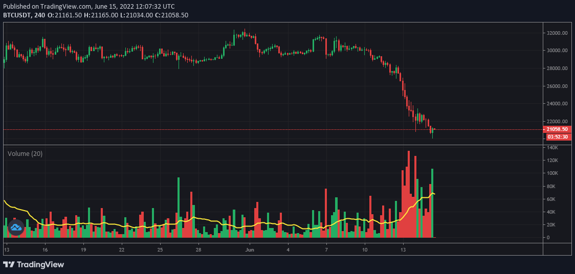 놀랍게도 며칠동안 지속되었던 하락세가 21,000달러에서 멈췄다.