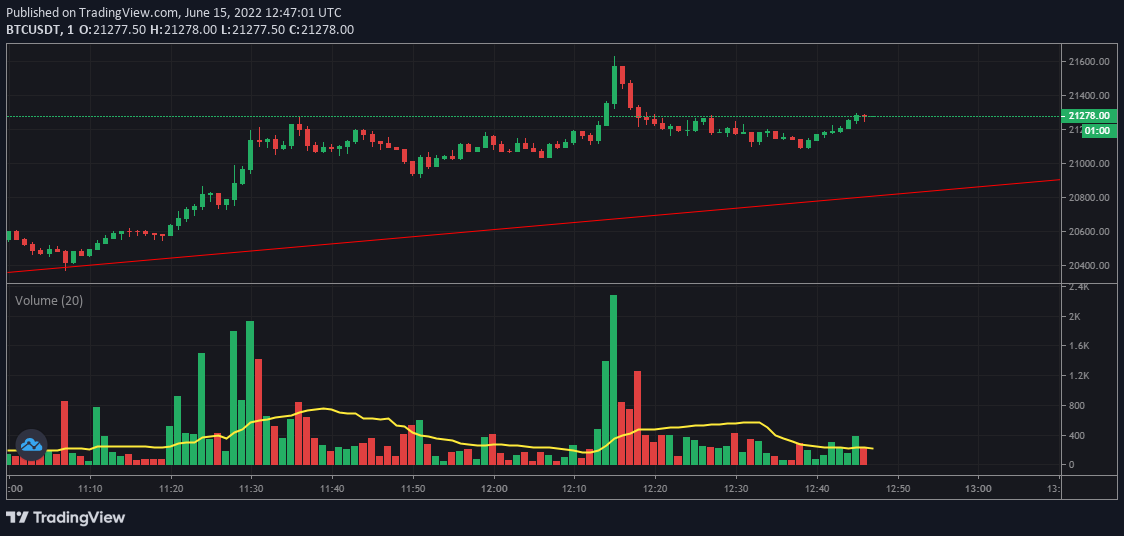 위와 같이 15분봉의 경우에는 조금 더 명확하게 추세를 확인할 수 있다. 적어도 추세선과 근접하게 단기 조정을 받을 가능성이 있기 때문에 숏포지션 전환 또는 차익실현의 기준을 정해준다. 이는 스캘핑 매매와도 밀접한 관계가 있을 수밖에 없다.