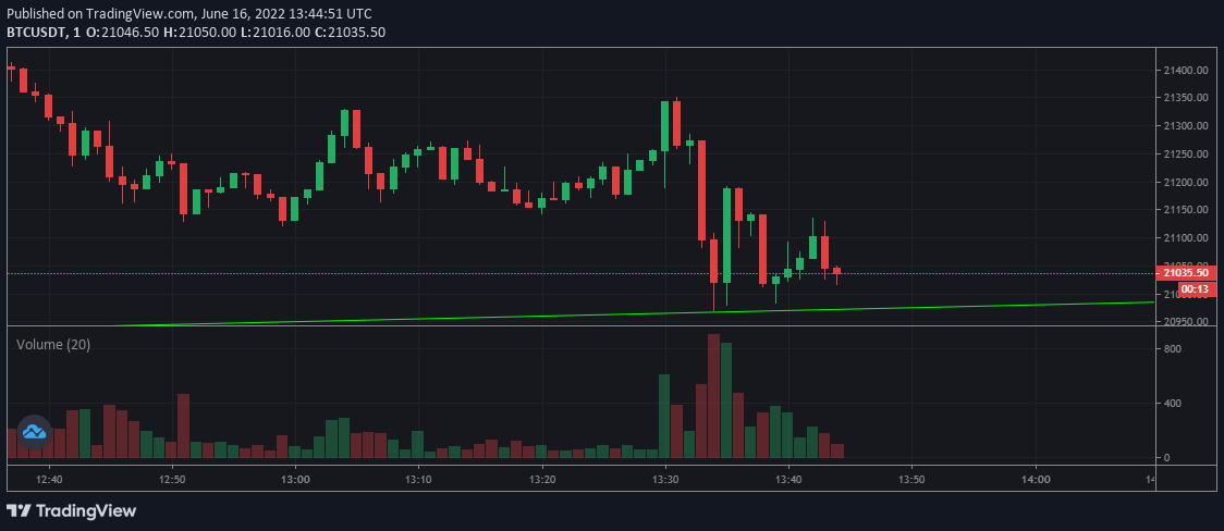 위와 같이 21,000달러 근처에서 지지를 받으며 상승으로 이어갈 준비를 하는 비트코인이 나스닥이 개장하자마자 가격이 폭락하는 모습을 보여준다. 그나마 다행인 것은 나스닥 차트에서도 매집 흔적이 뻔히 보인다는 것인데, 거래량이 폭발하면서 하락한 만큼이나 매수가 올라오기 때문에 추세전환의 시점으로 볼 수 있다는 것이다.