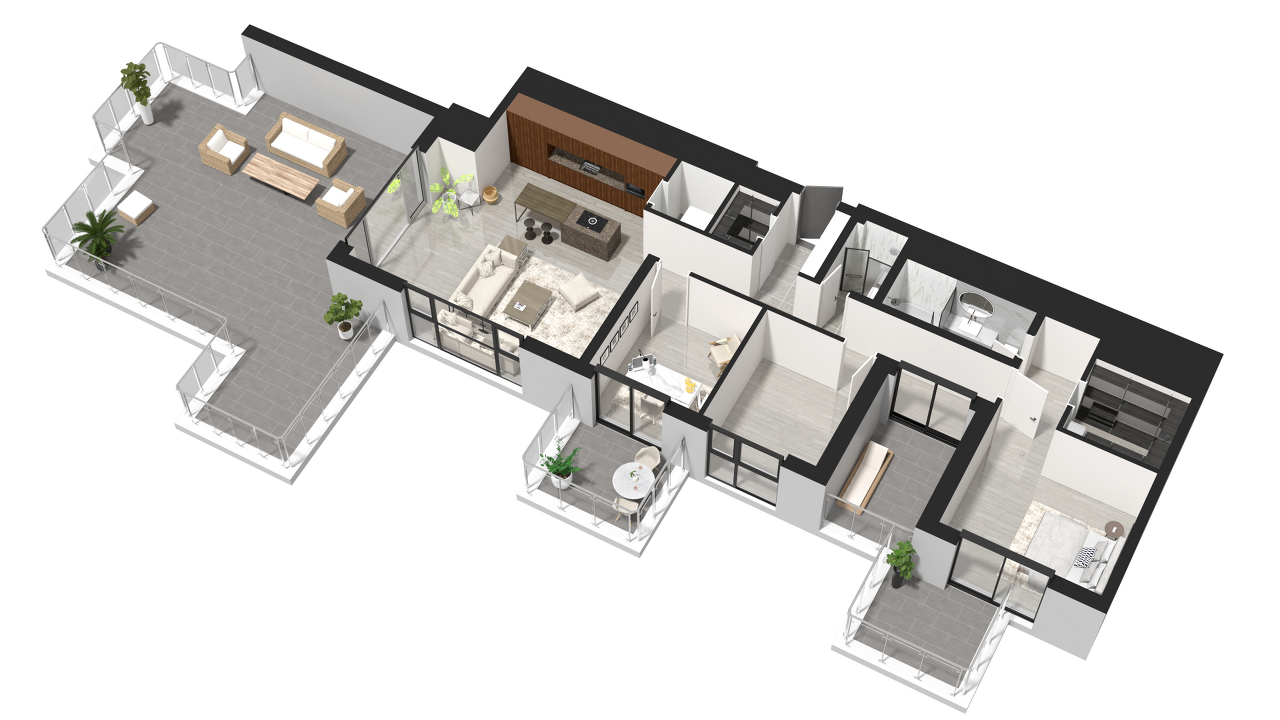 획일적인 주거의 틀에서 벗어나 자유로움과 여유로움을 만끽하는 펜트 루바토 타입은 강남대로를 내려다 보는 최고의 전망과 오픈형 테라스, 취미와 휴식, 업무 등 다양한 가치가 녹아 든 다목적 공간의 구성까지 수준 높은 삶을 영위할 수 있는 하이엔드 라이프의 정점을 경험하게 합니다.