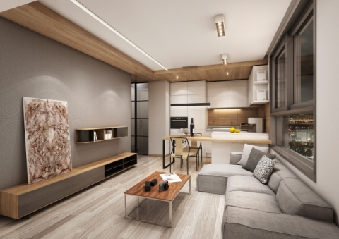 타입의 경우에는 아래와 같아 5개로 나눠져 있다. 제일 인기 있는 타입은 원룸 원 거실 형태(분리형) 타입이다.