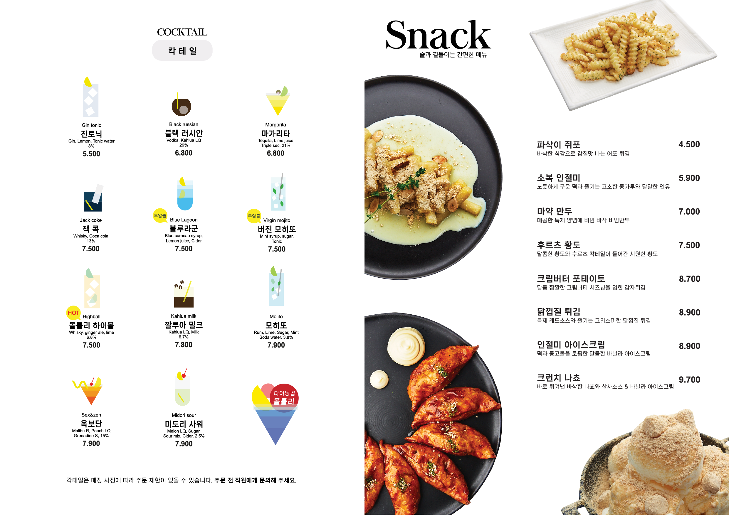 [ 간단메뉴ㅣ치킨ㅣ피자ㅣ파스타ㅣ요리류 I Beer & Alcohol ]
