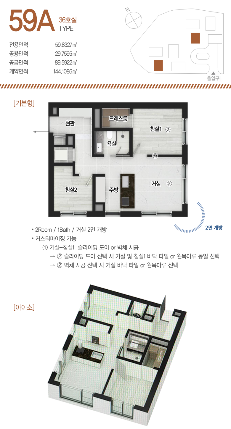 - 84㎡(3룸), 59㎡(2룸) 아파텔(3룸 2욕실 3bay 혁신설계)