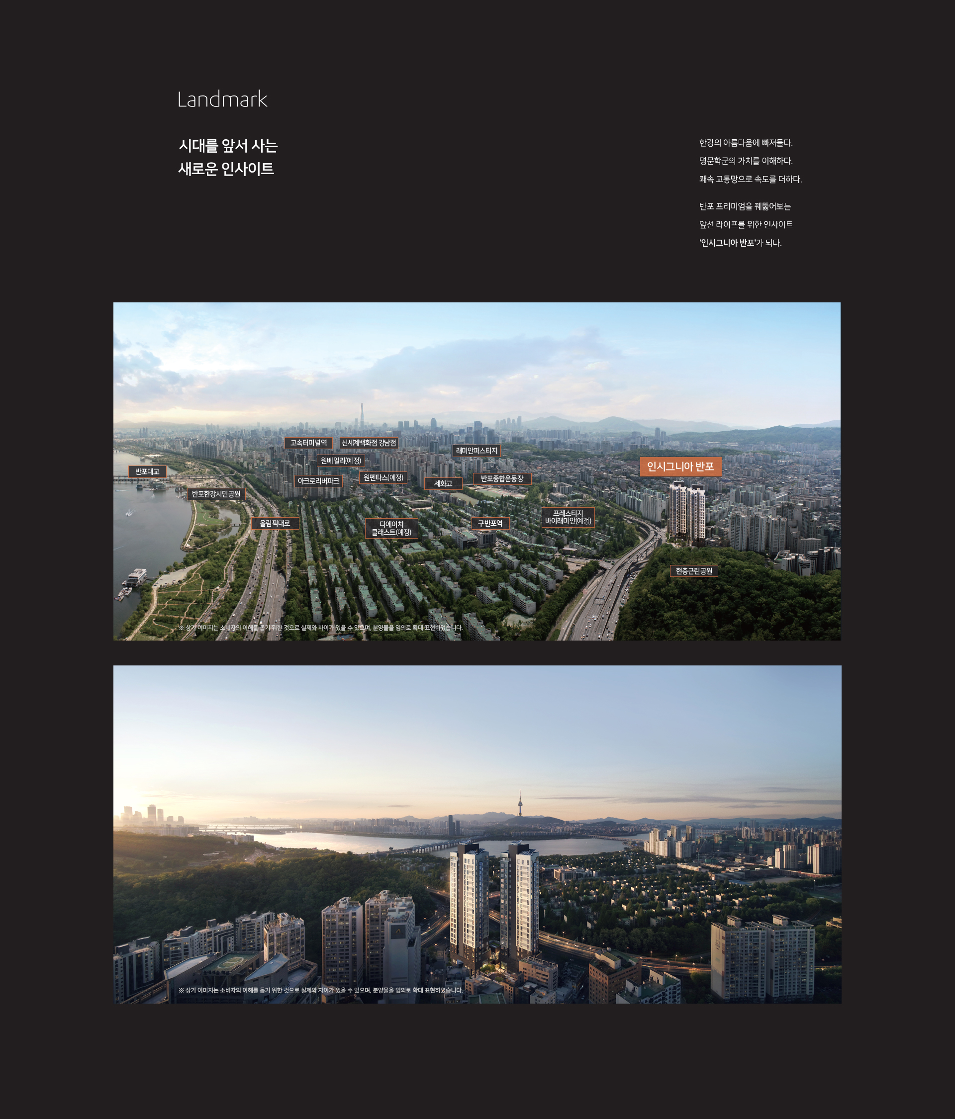 '인시그니아 반포'는 휘장을 뜻하는 영어 '인시그니아(INSIGNIA)'와 '반포'가 결합된 것으로, 도심의 상징적인 위치에서 시티 라이프스타일의 새로운 기준을 제시하는 럭셔리 주거 브랜드를 뜻한다.