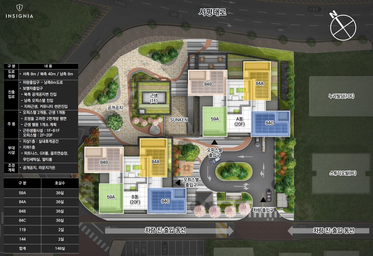- 총148실, B5층~20층, 2개동ㆍ84㎡(108실)ㆍ59㎡(36실)ㆍ펜트(4실)