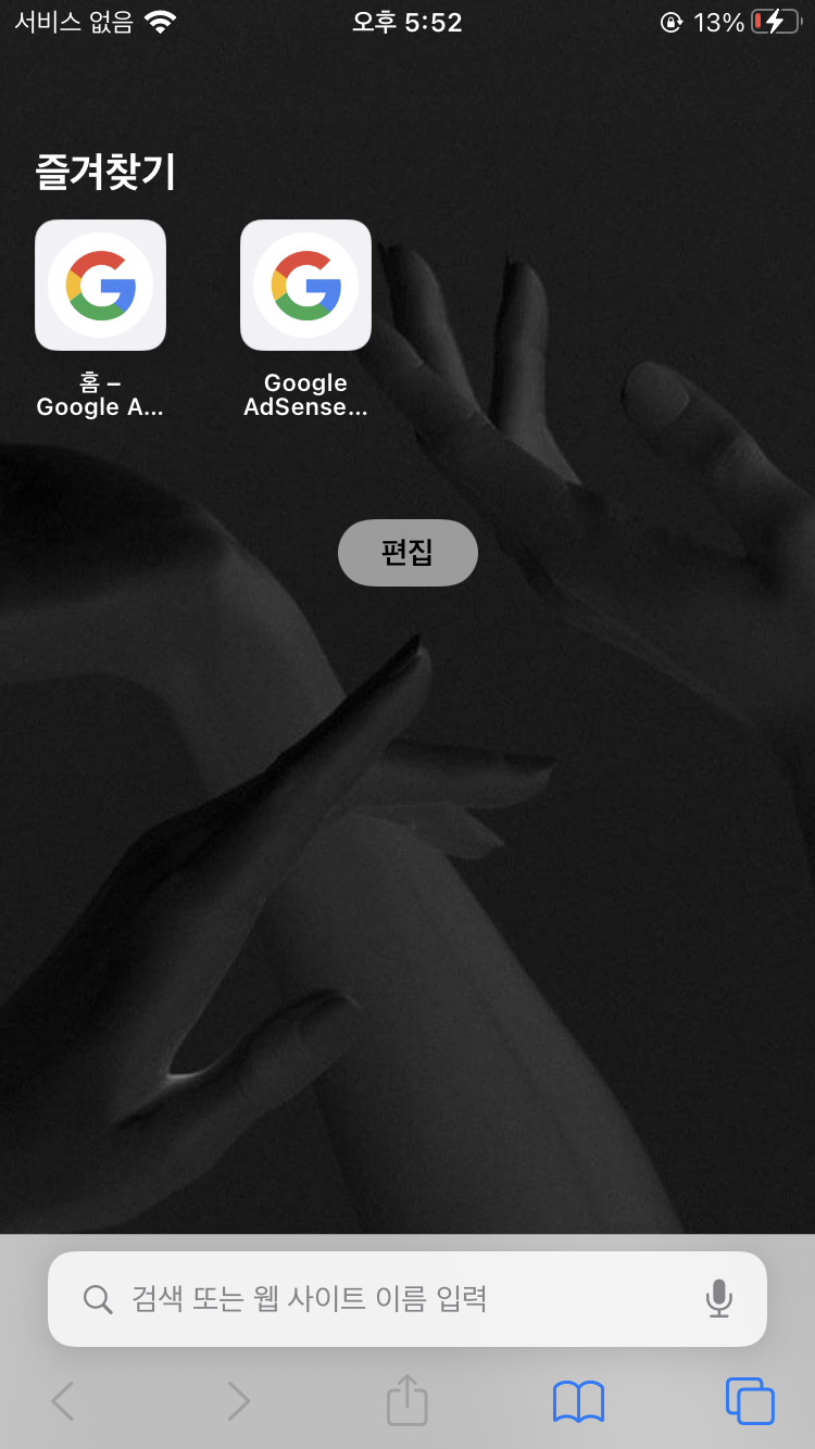 위와 같이 즐겨찾기를 해두면 제가 자주 방문하는 사이트 기능을 대체할 수 있습니다. 매우 편하죠. 구글 애드센스는 자주 확인하기 때문에 세팅해놨고, 그 외에 포털사이트나 기타 모바일로 자주 활동하는 사이트 등을 등록해두시면 되겠습니다.