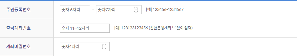 위와 같이 금융인증서를 발급받으면 매우 간편하게 인증이 가능하다는 장점이 있습니다. 발급방법도 사실상 크게 어려움이 없다. 먼저 신한은행 홈페이지에 접속한 뒤, 금융인증서 발급·재발급 메뉴를 클릭합니다. 그 다음 주민등록번호와 함께 출금계좌 번호, 계좌비밀번호 등을 입력합니다.