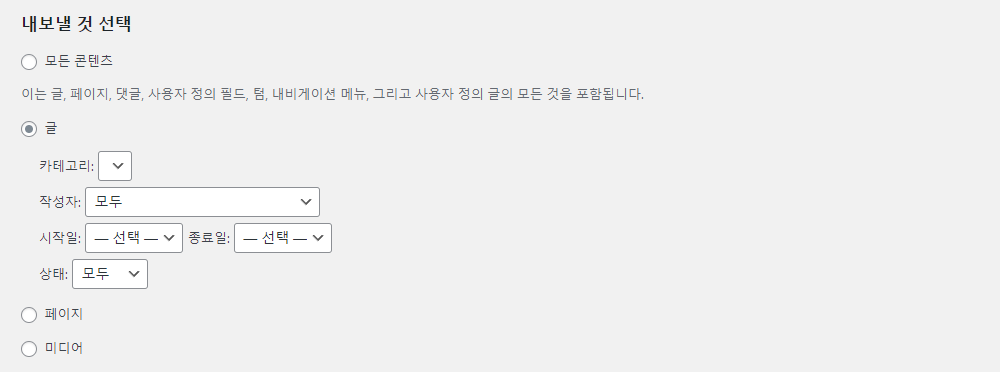 워드프레스 내보내기 기능
